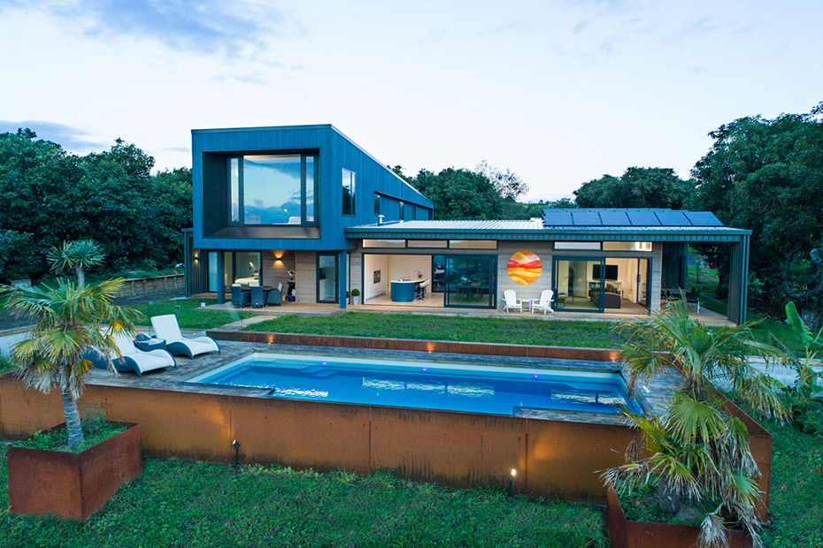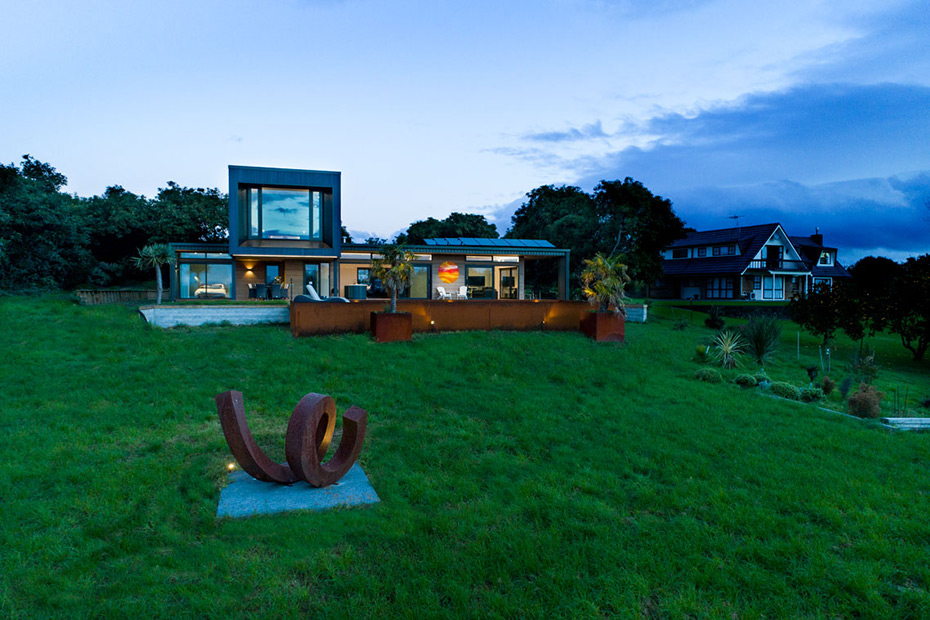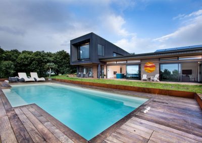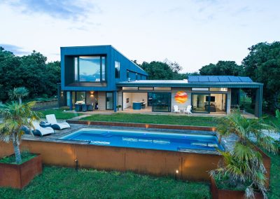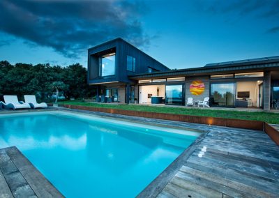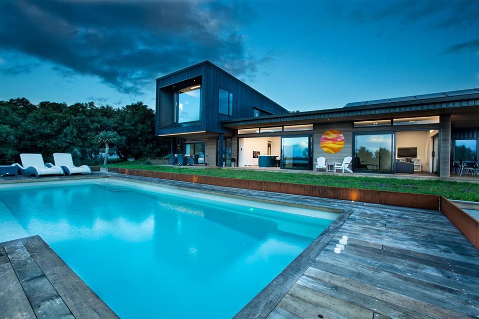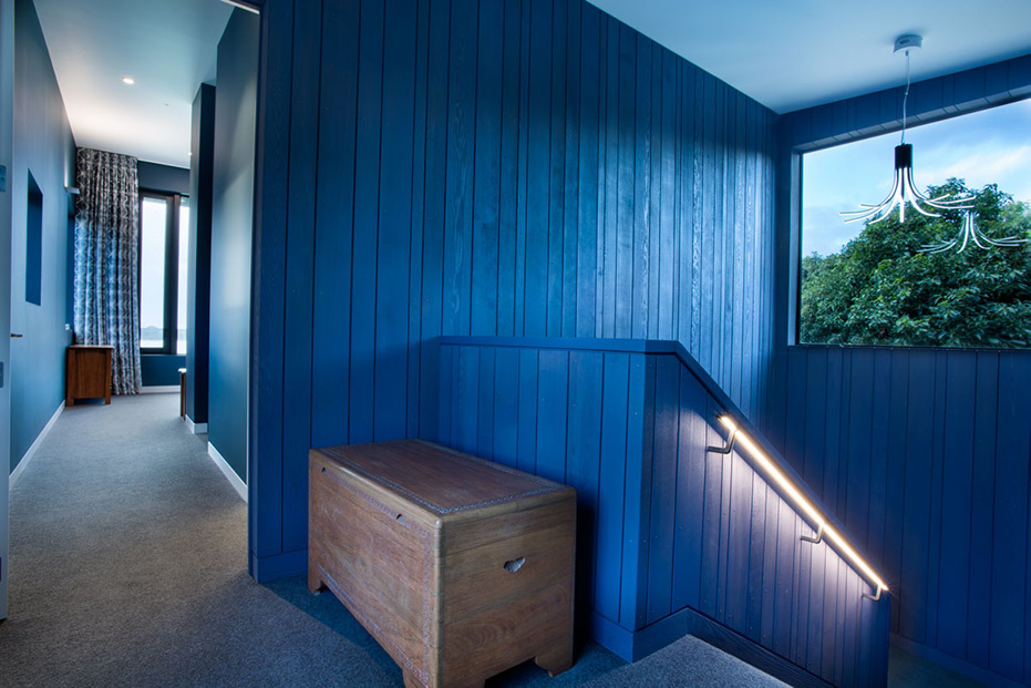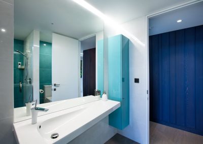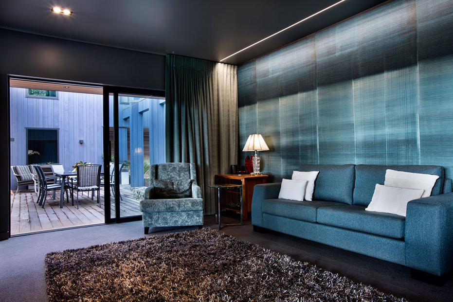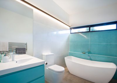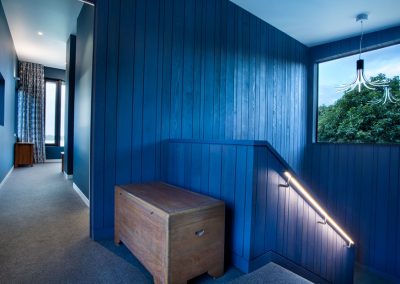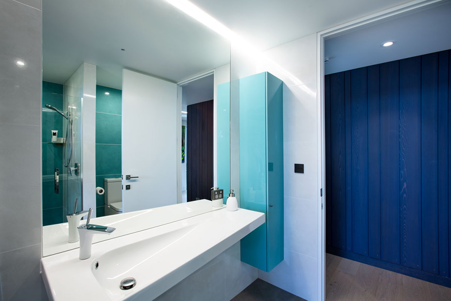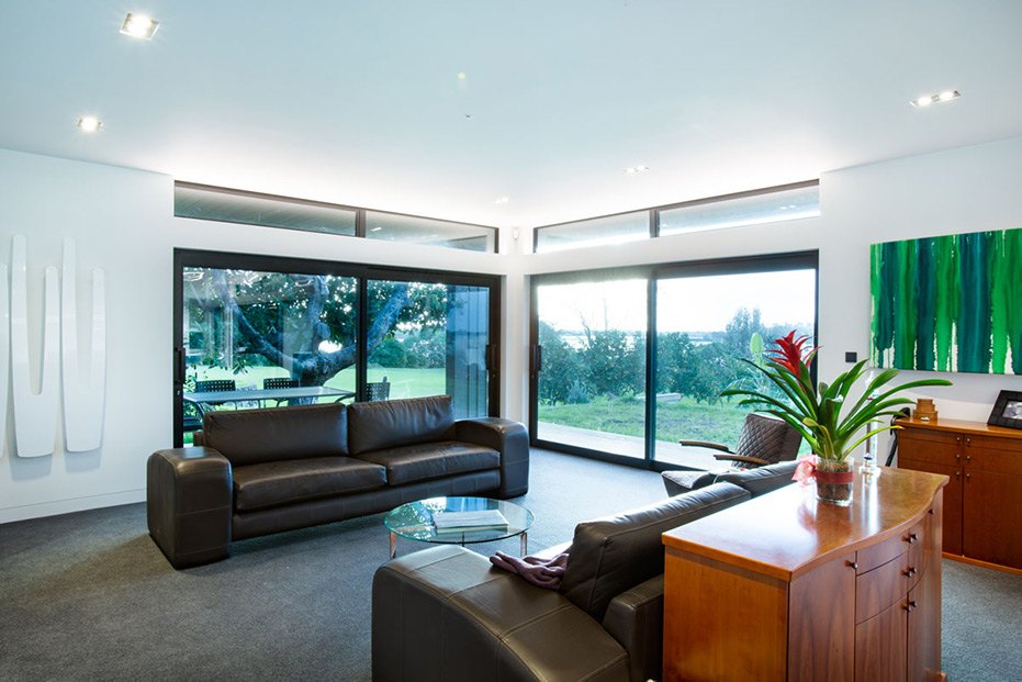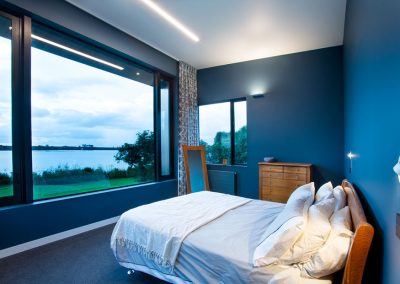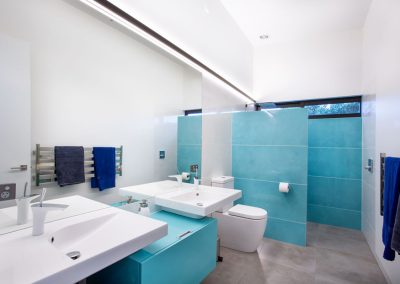 With a stunning harbour outlook and fresh, blue-toned interior colour palette highlighting the cool whites and indoor outdoor flow, this beautiful modern home demanded a careful lighting touch. David used custom-made kitchen task lighting in the ceiling, creating subtle warmth and welcome in the open-plan space.