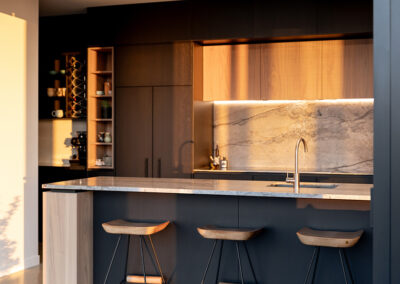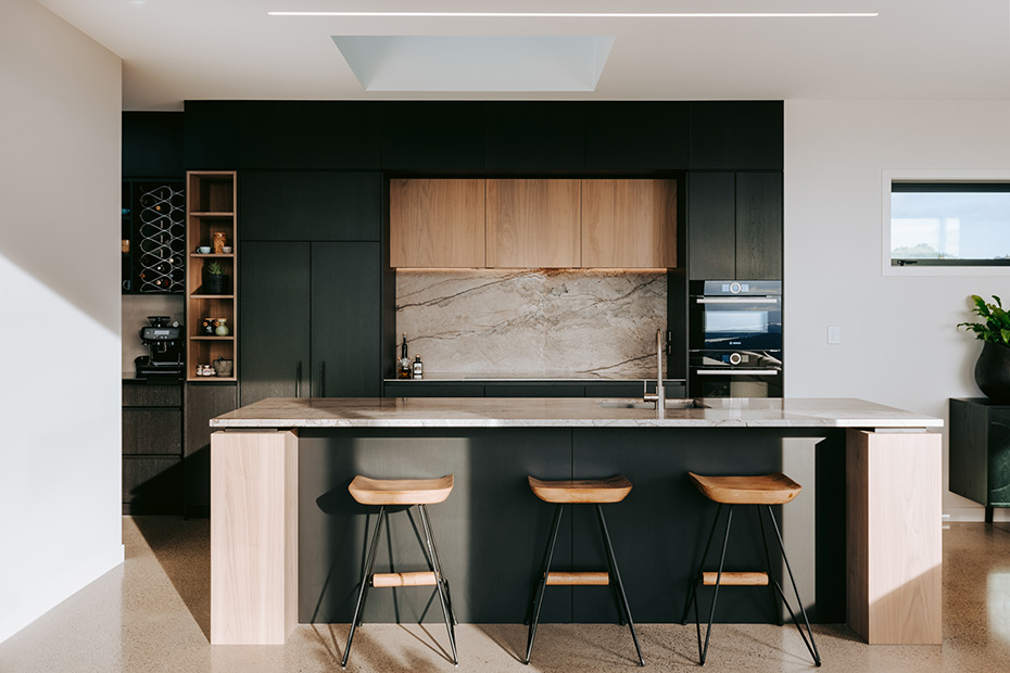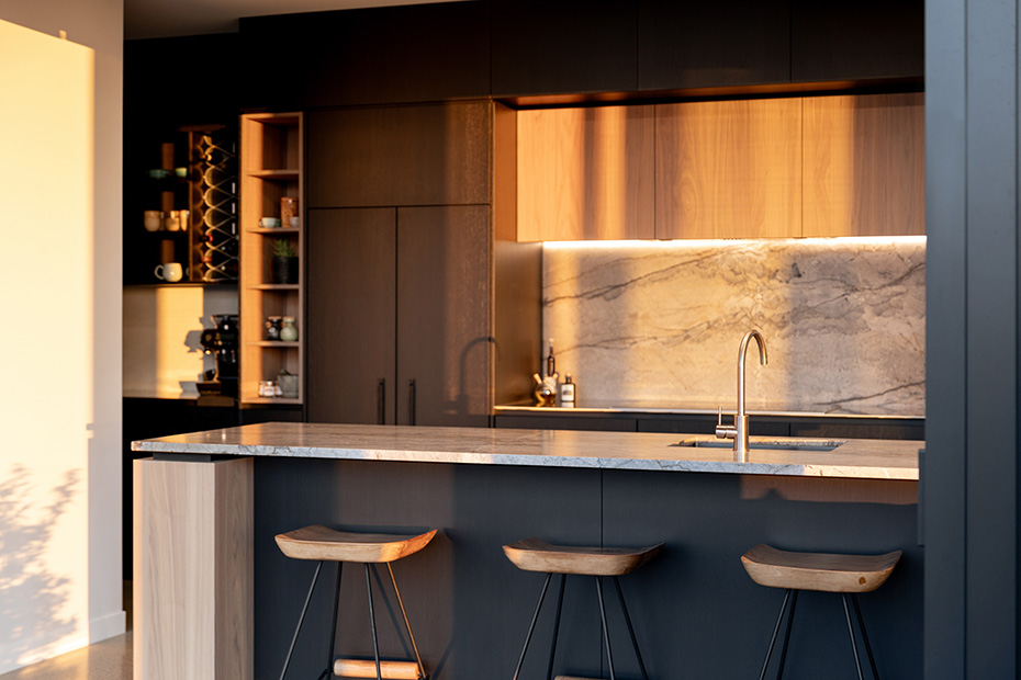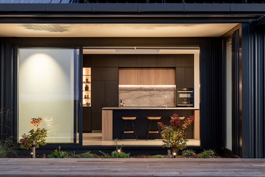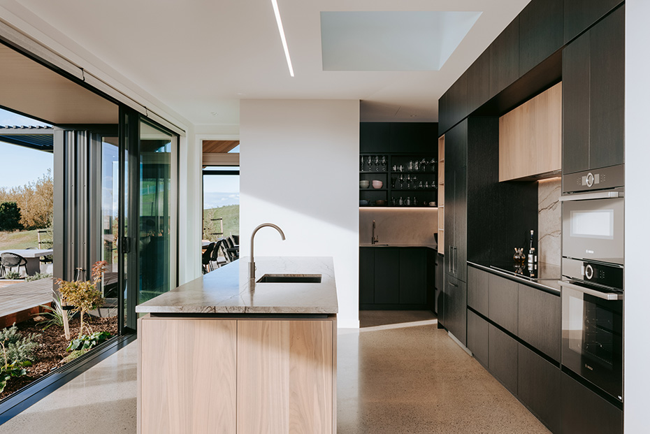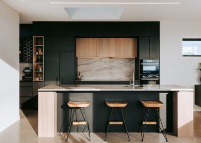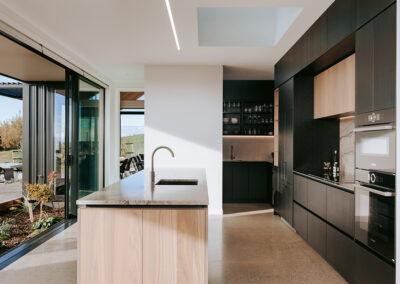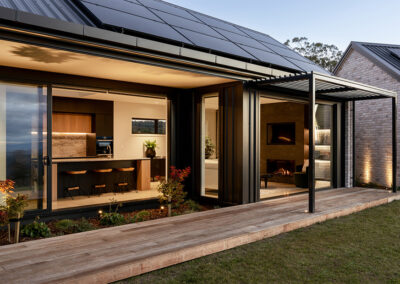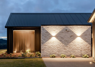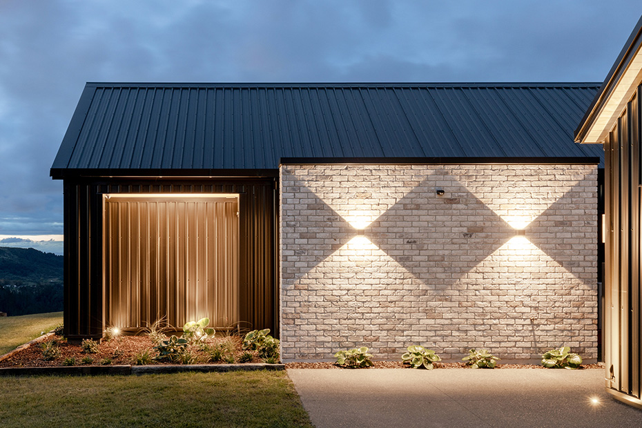 Perched atop the scenic hills, this Y-shaped home offers breathtaking views of the beautiful Bay of Plenty. Our architectural lighting solution focused on creating well-lit areas with pockets of contrast, enhancing the comfort and ambiance of the spaces. In key areas, we utilized sleek, trimless downlights for a modern and seamless look. The kitchen island features a Recessed Flush/Trimless Bob Each Way Extrusion, chosen for its excellent light output and reduced glare thanks to a negative detail diffuser. For hallways and bathrooms, we selected the Tiny Tim 11 Extrusion, which also feature a negative detail diffuser and offer a cost-effective solution with a flange for easier installation. The main areas benefit from a partly automated lighting system, using DALI power supplies and C-Bus Lighting Control to achieve a full range of dimming options. To highlight the textured brick surfaces of the exterior, we employed up lighting and up/down exterior fixtures, enhancing the architectural details and creating a visually appealing exterior. Our lighting design not only enhances the beauty of this stunning home but also ensures functional and comfortable living spaces, making the most of its picturesque location.