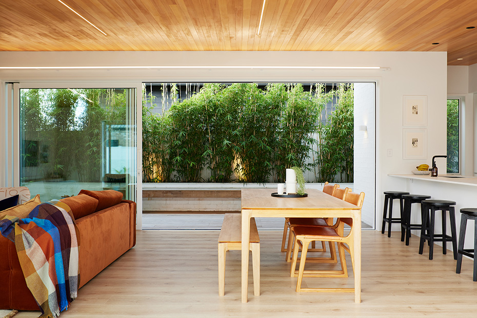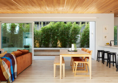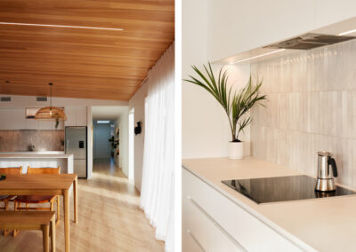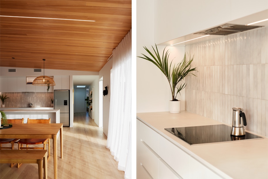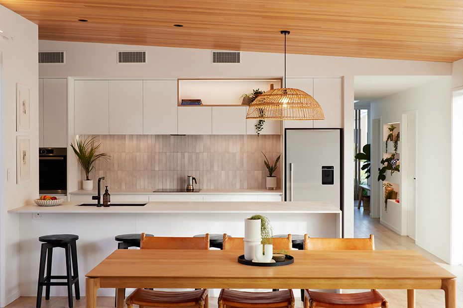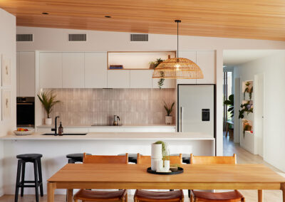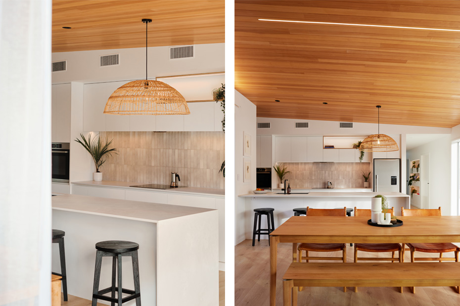 A modernist hideaway in the suburbs of Papamoa, this Palm Springs property conceals a refined oasis behind its unassuming facade. Combining mid-century influences with the textures and layout of modern New Zealand coastal living, our goal for this project was to create an adaptable lighting system to complement this architecturally designed home. Quality, architectural fittings were selected for the property’s key focus areas – the entrance, kitchen, living, and dining rooms – with standard fittings in the hallways and bedrooms. Minimalistic LED strip lighting was used throughout the home in conjunction with low-glare downlights to create a soft and inviting atmosphere that spoke to the relaxed design and lifestyle of the property and its owners. Concealed underneath the kitchen cabinetry, these strips allow for functional lighting without taking up valuable overhead space and were integrated into the timber-clad ceiling of the main living and dining space to create a seamless finish that disappears in the daytime. As the clients were experiencing trouble dimming some of the fittings with their chosen switchgear and light switches, we were able to offer an upgraded power supply solution that gave them full control over their home’s lighting through the switches and a smartphone app.