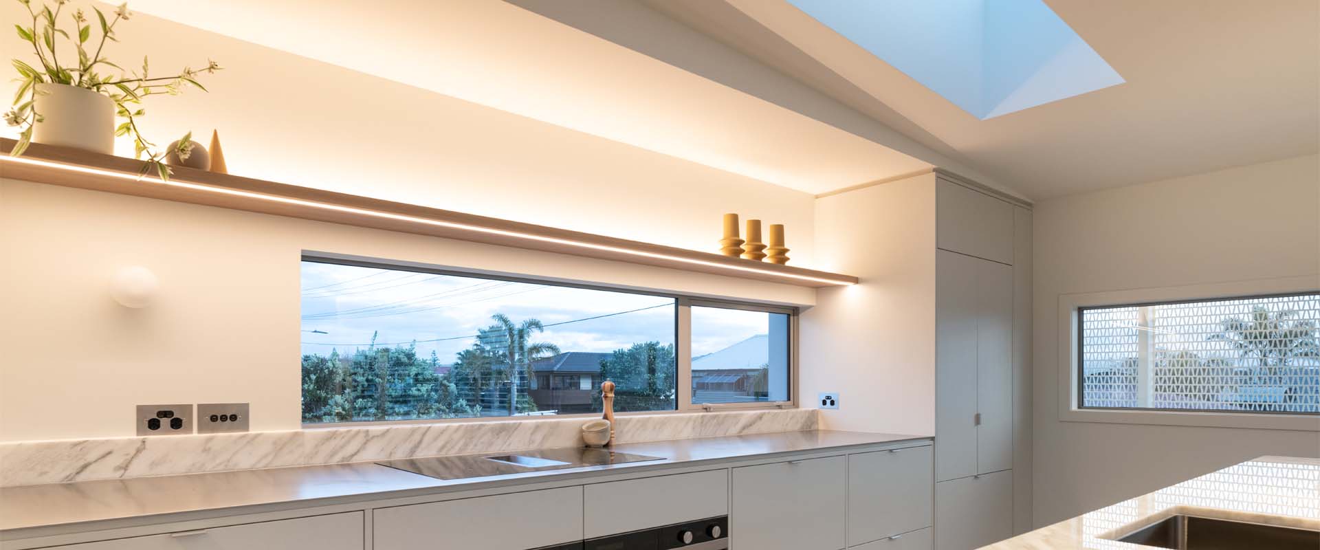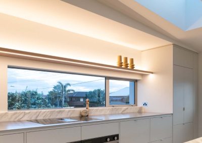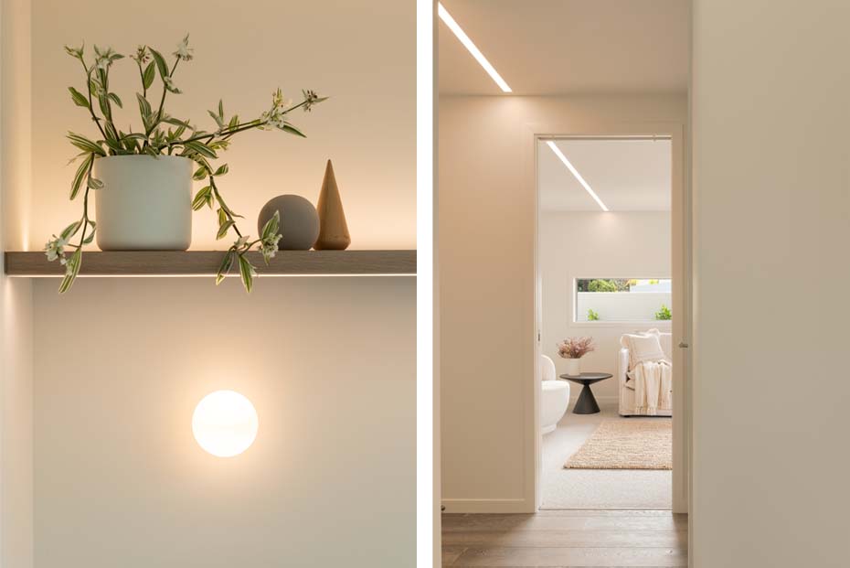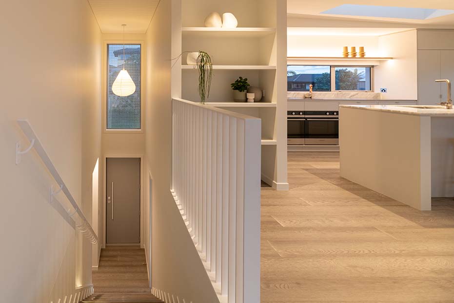 Built on prime real estate in the heart of Mount Maunganui, this newly completed home, designed by award-winning architect Jon McAlpine and built by Master Builders Thorne Group is nothing short of a masterpiece. Restricted to a relatively small floor plan, the two-storey home achieves a marvel with its three voluminous bedrooms, open space construction, and the incredible versatility of its design. Our lighting goals were to explore every opportunity to use lighting to augment the sense of spaciousness and openness in the home. We installed custom lighting throughout the property, selecting high-end fixtures that both matched the uncompromising commitment to the quality of the home’s aesthetics, and complemented the extensive natural lighting stemming from the property’s open air design.